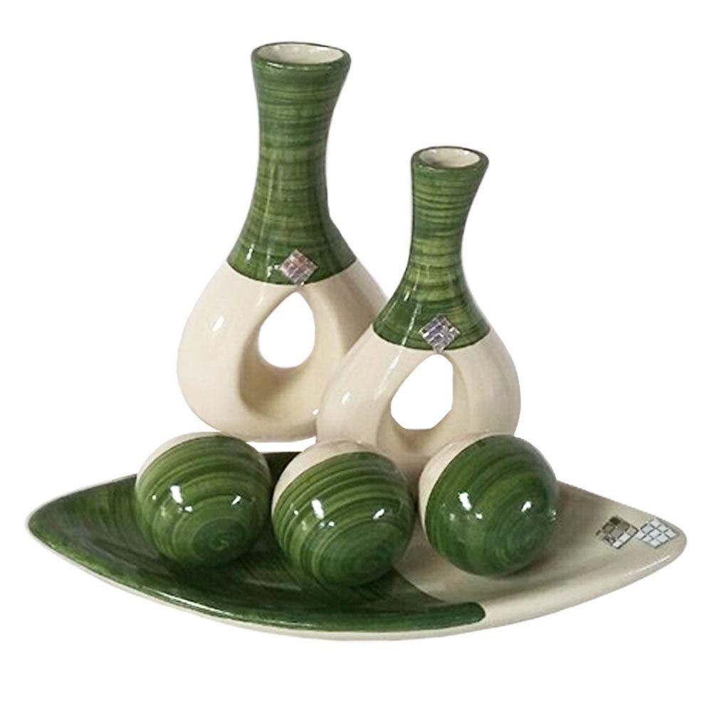 Jogo de Vasos Par Furados e Barca 3 esferas em Cerâmica Decor